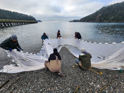 Photo Below: Bowman Bay beach seining with volunteers and Northwest Straits Foundation staff